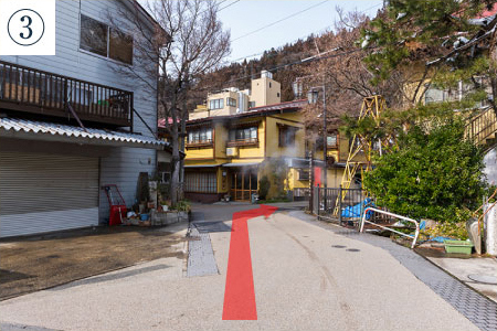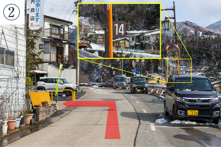 周辺の道案内(渋温泉観光案内処~炭乃湯) (普通車のみ通行可。大きい車両の場合は事前にご連絡ください)