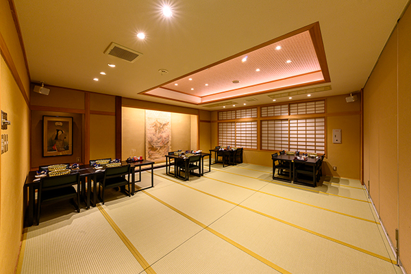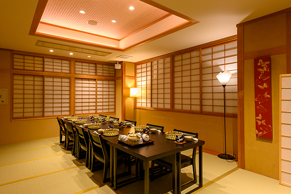 お食事は宴会場での食事となります。美味しいお料理とお酒で楽しいひと時をお過ごしいただけます。